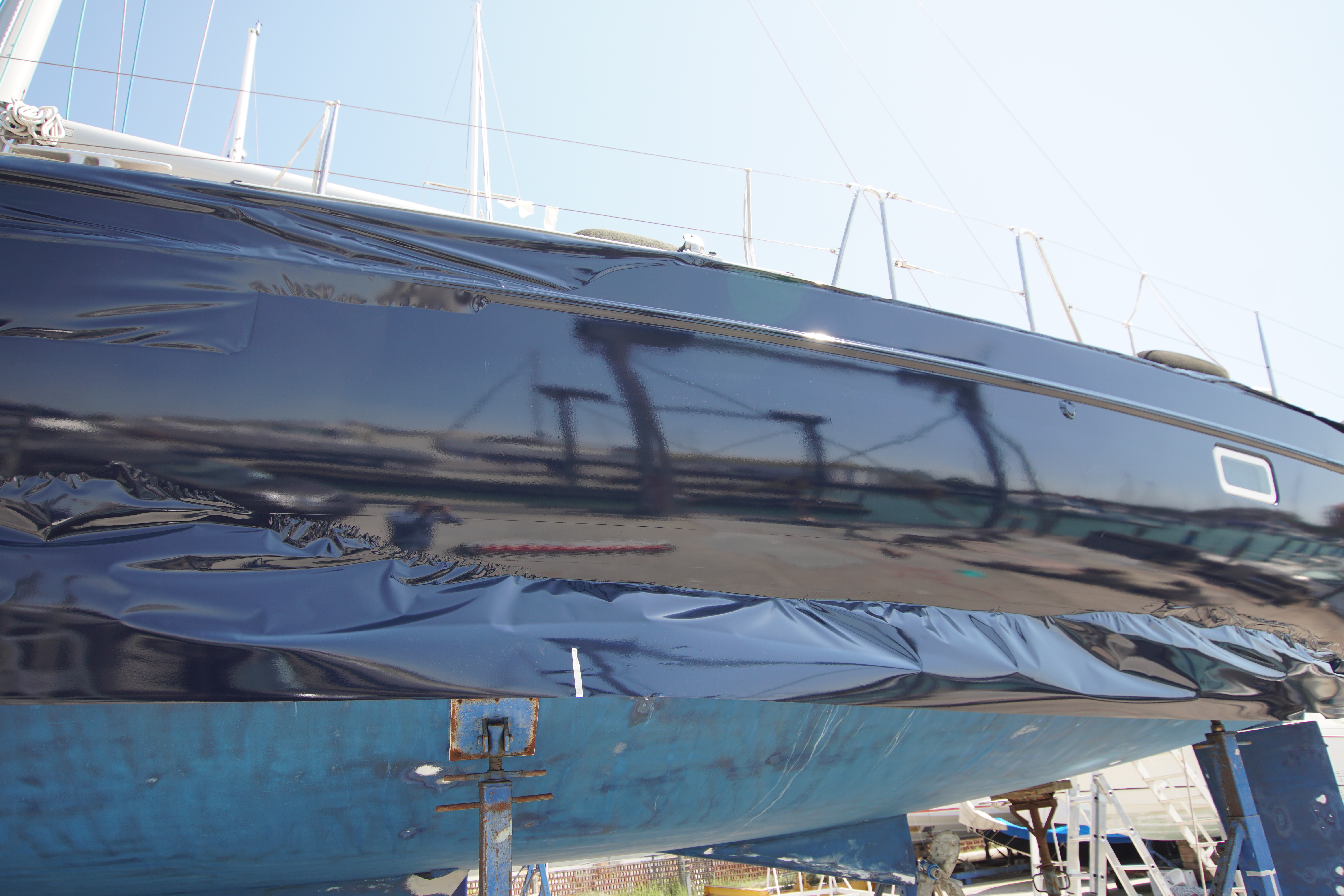 Sempre più spesso ci viene richiesto un intervento sulle murate delle barche a vela, tanti Beneteau. E’ la classica applicazione dalla linea di galleggiamento in su. Il blu navy rimane la scelta  più in uso tra i lupi di mare…